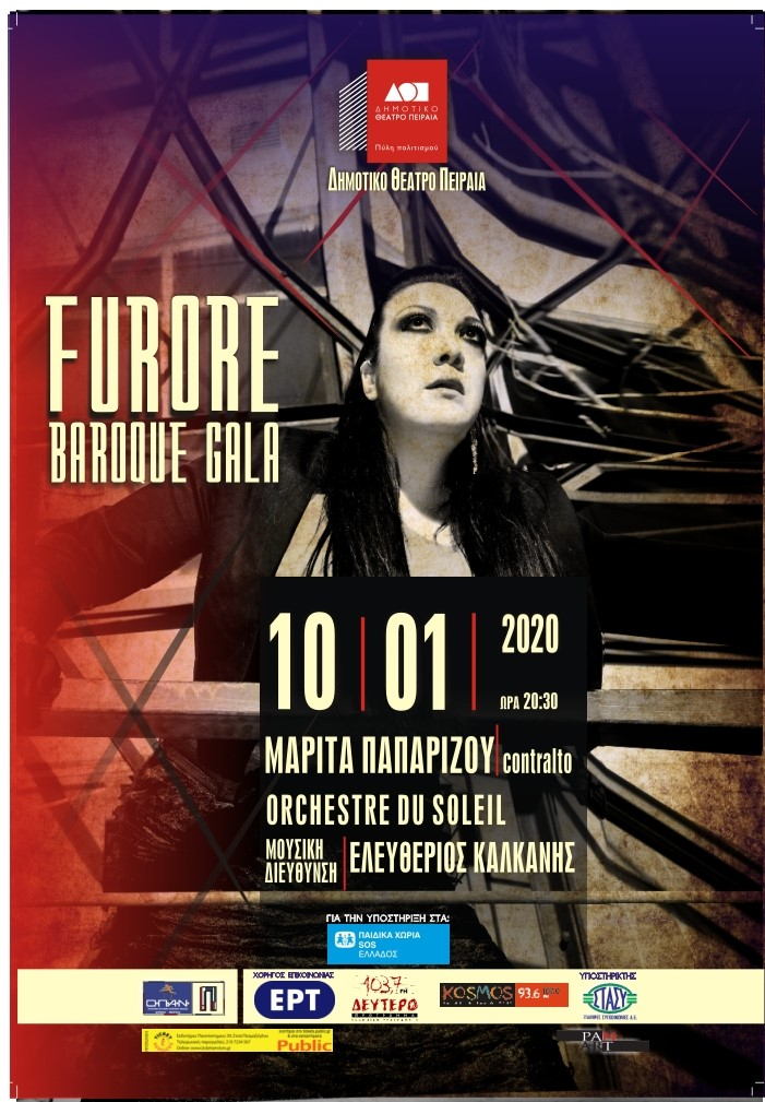 Η διεθνούς φήμης κοντράλτο Μαρίτα Παπαρίζου θα δώσει μια ξεχωριστή συναυλία στο Δημοτικό Θέατρο Πειραιά, την Παρασκευή 10 Ιανουαρίου, παρουσιάζοντας το μπαρόκ γκαλά «Furore», με τη σύμπραξη της Orchestre du Soleil, υπό τη διεύθυνση του καταξιωμένου αρχιμουσικού Ελευθέριου Καλκάνη.