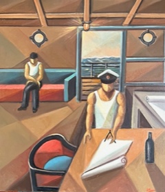 Οι πίνακες του Γιάννη Μίχα – ελαιογραφίες και υδατογραφίες - μας φέρνουν κοντά σε νέες θαλασσινές περιπλανήσεις με τα πλοία του και οδηγούν σε λιμάνια, ναυπηγεία, καρνάγια παρέα με τους ανθρώπους τηςαλμύρας και της σκουριάς.