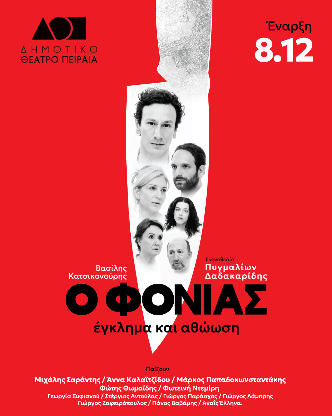 Το Δημοτικό Θέατρο Πειραιά, παρουσιάζει την παράσταση «Ο φονιάς, έγκλημα και αθώωση», το νέο έργο του Βασίλη Κατσικονούρη, σε σκηνοθεσία Πυγμαλίωνα Δαδακαρίδη, στην Κεντρική Σκηνή, από 8 Δεκεμβρίου.