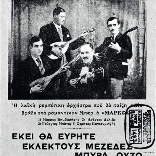 Μάρκος Βαμβακάρης, Γιώργος Μπάτης, Ανέστης Δελιάς, Στράτος Παγιουμτζής δημιουργούν το 1934 την πρώτη ρεμπέτικη κομπανία και υπογράφουν τη ληξιαρχική πράξη γέννησης του ρεμπέτικου στον Πειραιά. Η ζωή τους και τα τραγούδια τους αναβιώνουν σε μια θεατρική παράσταση στο μεγάλο λιμάνιΑς μπούμε στη μηχανή του χρόνου για να γυρίσουμε περί τα 180 χρόνια πίσω. Στις φυλακές του Μεντρεσέ στην Αθήνα και συγκεκριμένα στην Πλάκα. Στη βορινή πλευρά των σημερινών «Αέρηδων». Ισλαμικό ιεροσπουδαστήριο που είχε ιδρυθεί τον 17ο αιώνα. Επί εποχής Οθωνα και Γεωργίου Α' χρησιμοποιούνταν ως φυλακές και τόπος εκτελέσεων. Οι απαγχονισμοί γίνονταν σε έναν πλάτανο στο κέντρο της αυλής του, με αποτέλεσμα να βγει η έκφραση «χαιρέτα μου τον πλάτανο». Οι κατάδικοι και οι φυλακισμένοι εκτός από την παραπάνω ατάκα είναι υπεύθυνοι για μια ακόμη γέννα. Εδώ δημιουργήθηκαν τα πρώτα ρεμπέτικα, τα λεγόμενα «μουρμούρικα». Οι φυλακισμένοι τραγουδούσαν τα σεκλέτια τους και τη μαύρη τους ζωή. Και οι καημοί τους έφταναν λίγο πιο κάτω στους μάγκες και στα κουτσαβάκια του Ψυρρή. Τα μουρμούρικα και τα σεβνταλίδικα αγγίζουν τις χορδές των ανθρώπων των ασθενέστερων τάξεων. Στις αρχές του 1900 τα ρεμπέτικα αποτελούσαν το λαϊκό τραγούδι των φτωχών συνοικιών των πόλεων. Ο Αλέξανδρος Παπαδιαμάντης στο διήγημα «Ο γείτονας με το λαγούτο» (1900) γράφει για έναν τουρκομερίτη που ζούσε σε αθηναϊκή γειτονιά και τραγουδούσε μάγκικα - κουτσαβάκικα τραγούδια.