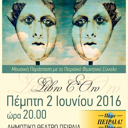 Το Πειραϊκό Φωνητικό Σύνολο «Libro Coro» σε διδασκαλία - διεύθυνση Ανθής Γουρουντή, παρουσιάζει τη μουσική παράσταση με τίτλο «Στης Θάλασσας την άβυσσο να πνίξουμε τον Δράκο, να γίνει βράχος και γιαλός, να στέρξουν τα ξενάκια...», στο Δημοτικό Θέατρο Πειραιά, την Πέμπτη 2 Ιουνίου 2016 και ώρα 20.00