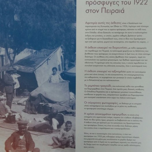 Η έκθεση «Κερδισμένη Πατρίδα: από το 1922 μέχρι σήμερα», που διοργανώνει το Δημοτικό Θέατρο Πειραιά, με εκκίνηση τη γρήγορη ανασύσταση της ζωής που πέτυχαν οι πρόσφυγες του 1922, επιχειρεί να ανιχνεύσει μέσα στα όρια